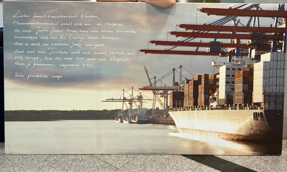 Wir spannen dich nicht weiter auf die Folter: Es gibt bedruckte coop Leinwände zu gewinnen, die schon in unserer super alten Zentrale zu finden waren. Aufgrund des Alters haben sie leichte Gebrauchsspuren, sind aber noch schön anzusehen. Wer kleiner mag, hat die Chance, ein coop Seidentuch zu gewinnen. Früher fester Bestandteil der coop Dienstkleidung, heute dein Must have für das nächste DIY Projekt. Von dem wir unbedingt Bilder brauchen.