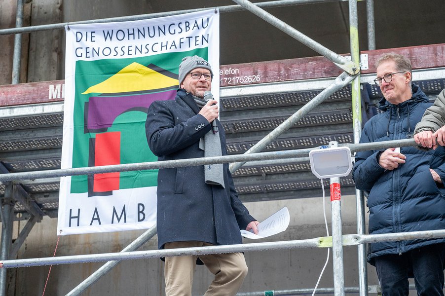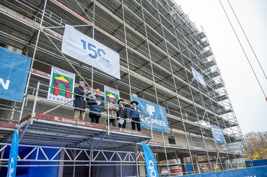 In Hamburg Barmbek-Nord geht’s voran! An der Ecke Steilshooper Straße und Schlicksweg wächst unser gemeinsames Genossenschaftsprojekt von coop und dhu stetig weiter. Beim Richtfest am 13. November 2023 kamen Vertreterinnen und Vertreter beider Genossenschaften, Partner und Projektbeteiligte zusammen, um den Baufortschritt gebührend zu feiern.