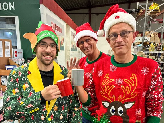Wenn der Geschäftsführer plötzlich zum Marketing-Pro im Weihnachtspulli wird: Das ist echtes Teamwork. Danke Marco (und natürlich auch danke Norman, unserem Vorstandsmitglied, dass sogar den Weihnachtsbaum auf dem Kopf hatte). Wir freuen uns riesig auf Schleswig-Hosteins günstigsten Weihnachtsmarkt bei unserer Tochtergesellschaft Paul Steffenhagen GmbH in Eckernförde, Goldammerweg 3.