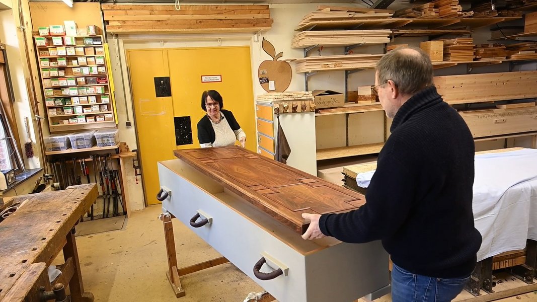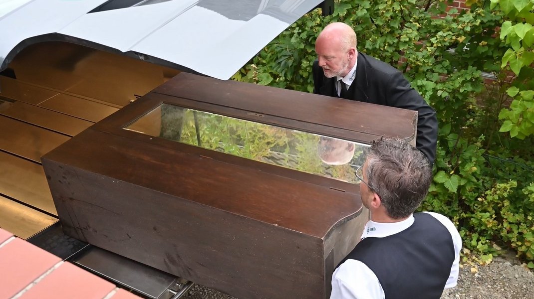 "Damit die letzte Ruhestätte ganz individuell gestaltet werden kann, bauen wir Lieblingsmöbel zu Särgen um", erklärt Alexander Kühl, Betriebsleiter bei Flenker Bestattungen. "Wenn Angehörige zum Beispiel den Schrank, das Bett oder den Schreibtisch eines verstorbenen Menschen für den Sarg nutzen möchten, dann machen wir das möglich."