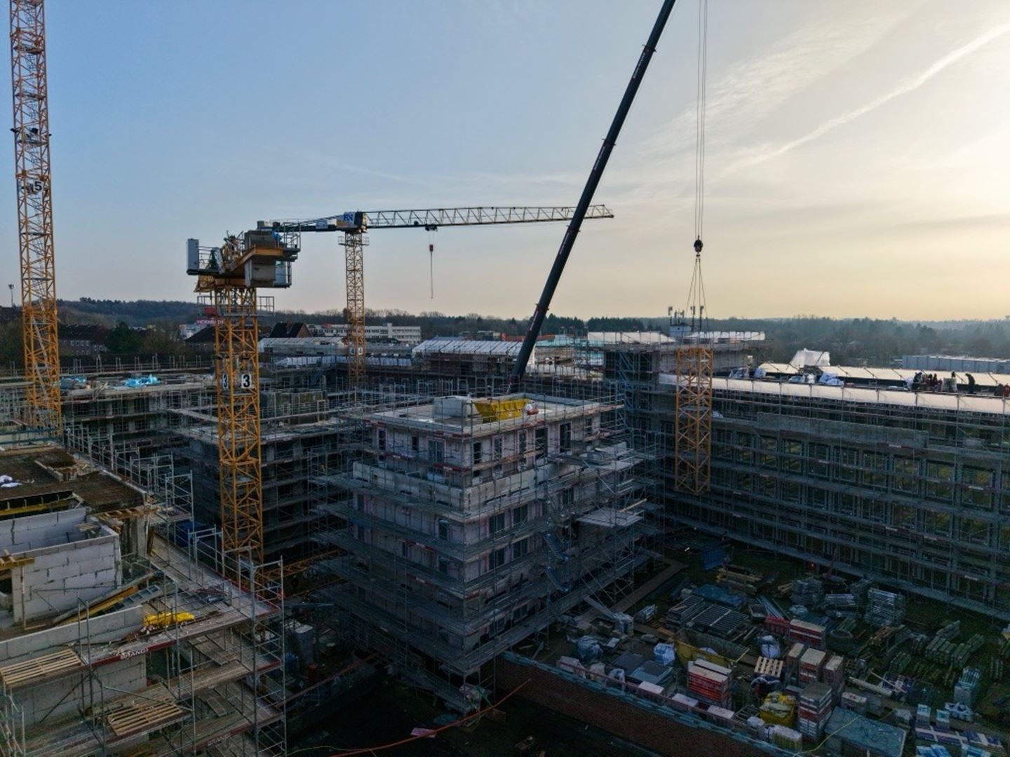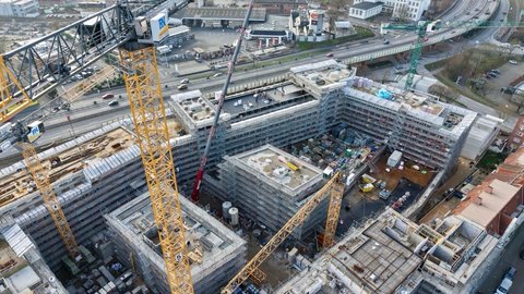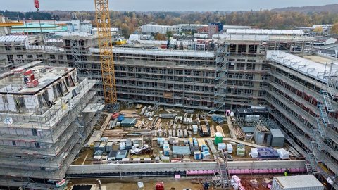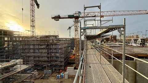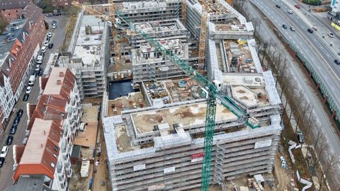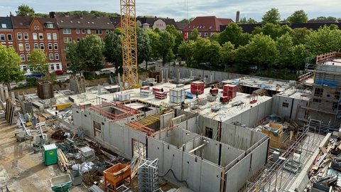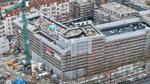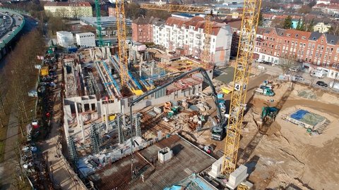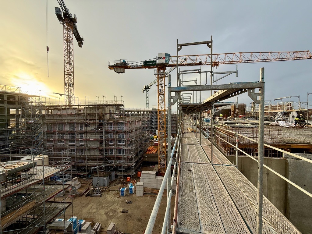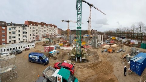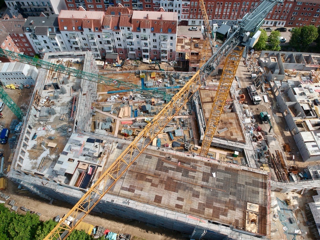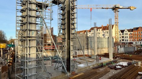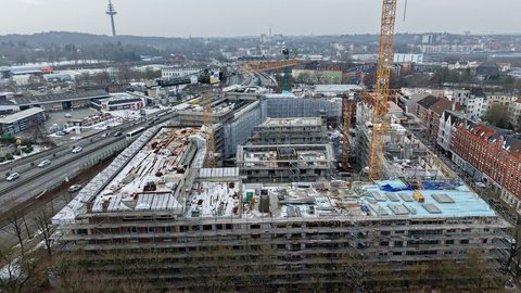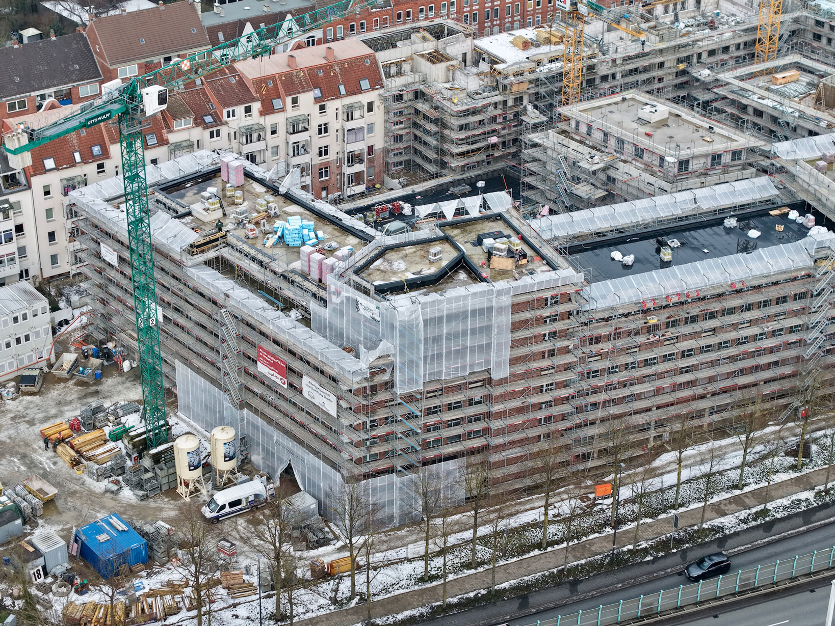 Sieh durch unsere Baustellenkamera tägliche Fotoaufnahmen des wachsenden coop Stammhausquartiers in der Kieler Sörensenstraße.