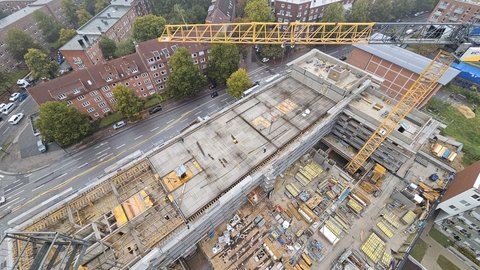 Im Hamburger Stadtteil Barmbek-Nord bauen wir gemeinsam mit der Baugenossenschaft dhu einen Gebäudekomplex von vier Häusern.